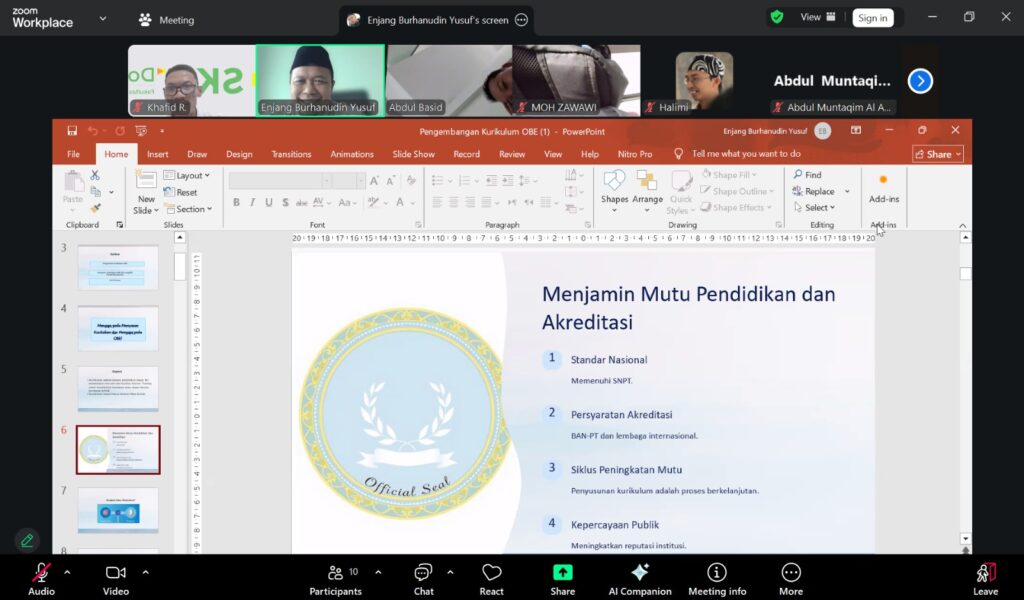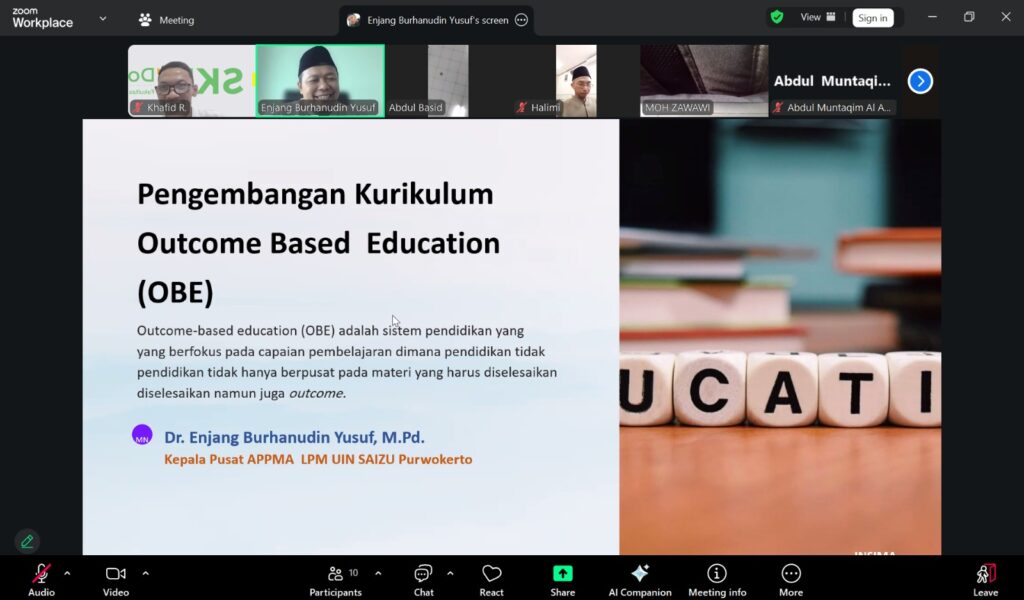 Kegiatan yang digelar secara daring pada Senin (2/3/2026) ini menghadirkan pakar kurikulum sekaligus Kepala Pusat APPMA LPM UIN SAIZU Purwokerto, Dr. Enjang Burhanudin Yusuf, M.Pd., sebagai narasumber untuk diskusi teknis implementasi Outcome-Based Education (OBE).