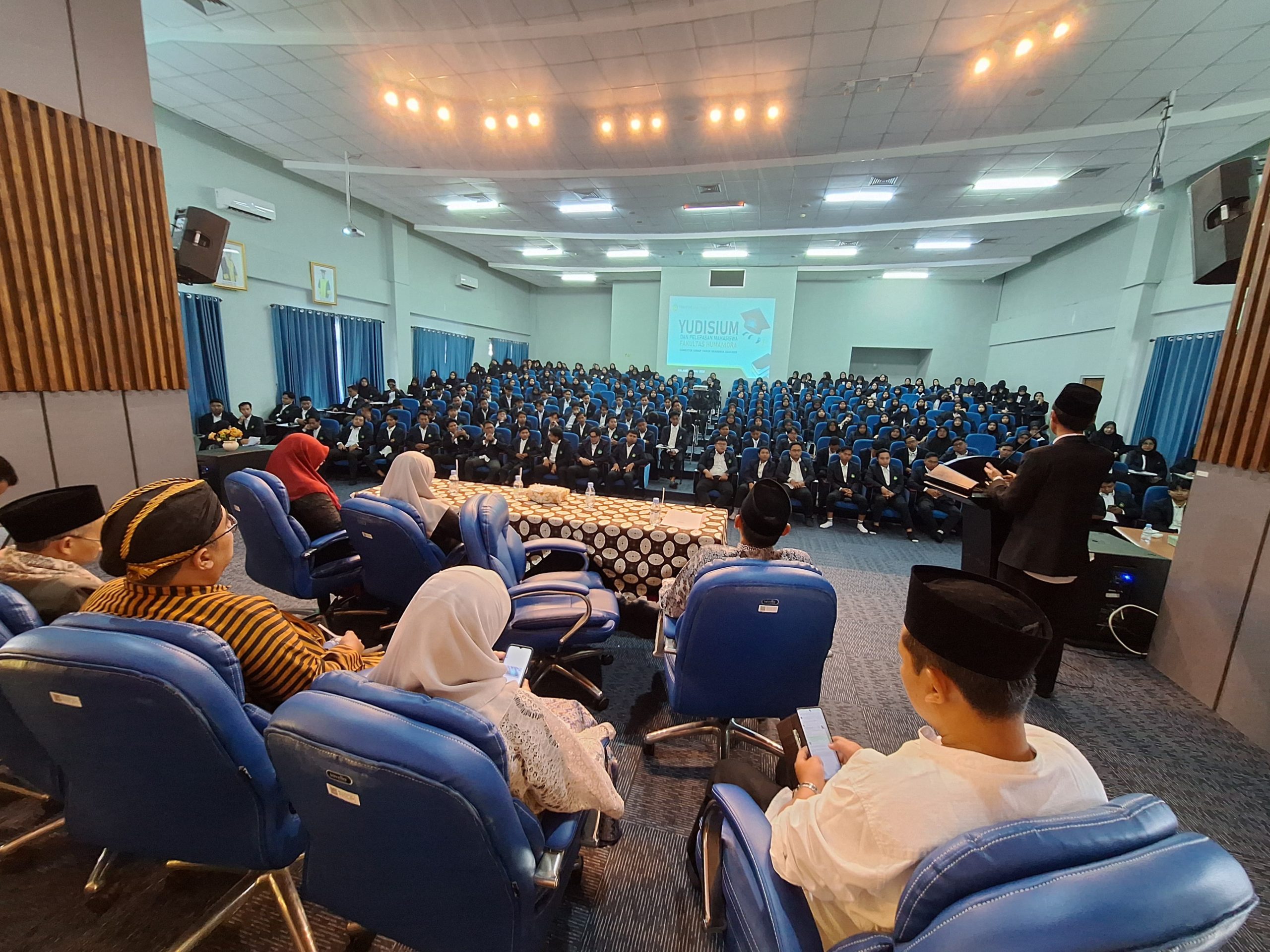 HUMANIORA – (14/7/2025) Suasana haru dan bahagia menyelimuti lantai tiga ruang teater Fakultas Humaniora Universitas Islam Negeri Maulana Malik Ibrahim Malang pada Senin, 14 Juli 2025. Sebanyak 231 mahasiswa resmi dikukuhkan sebagai calon lulusan sarjana dalam Yudisium Semester Genap Tahun Akademik 2024/2025.