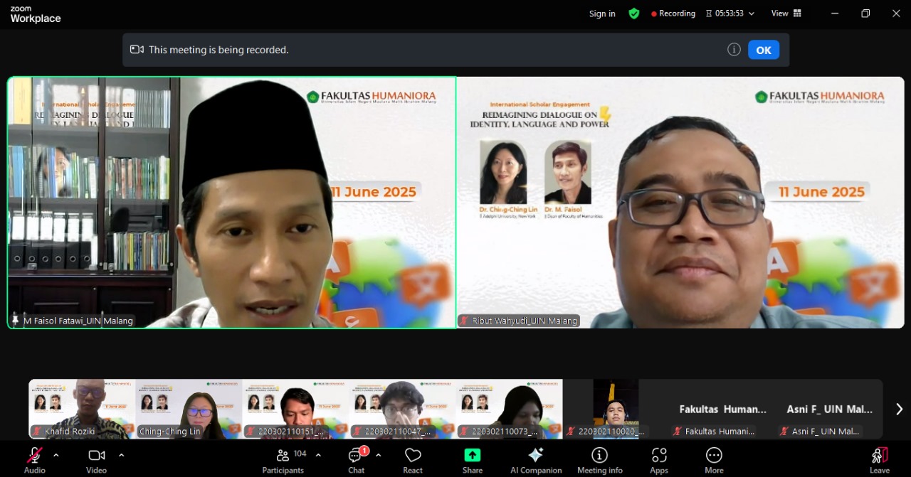 HUMANIORA – (11/6/2025) Kemajuan ilmu pengetahuan dan teknologi telah mengubah cara manusia memahami identitas diri, bahasa, serta hubungan kekuasaan yang melekat dalam masyarakat. “Tema ini sangat relevan dengan tantangan dunia modern. Dalam konteks global yang kian kompleks, dialog menjadi kunci utama untuk memahami kembali konstruksi identitas, bahasa, dan relasi kuasa baik dalam ranah sosial maupun akademik,” hal ini disampaikan Dekan Fakultas Humaniora, Dr. M. Faisol dalam kegiatan International Scholar’s Engagement (ISE) pada Rabu, 11 Juni 2025.