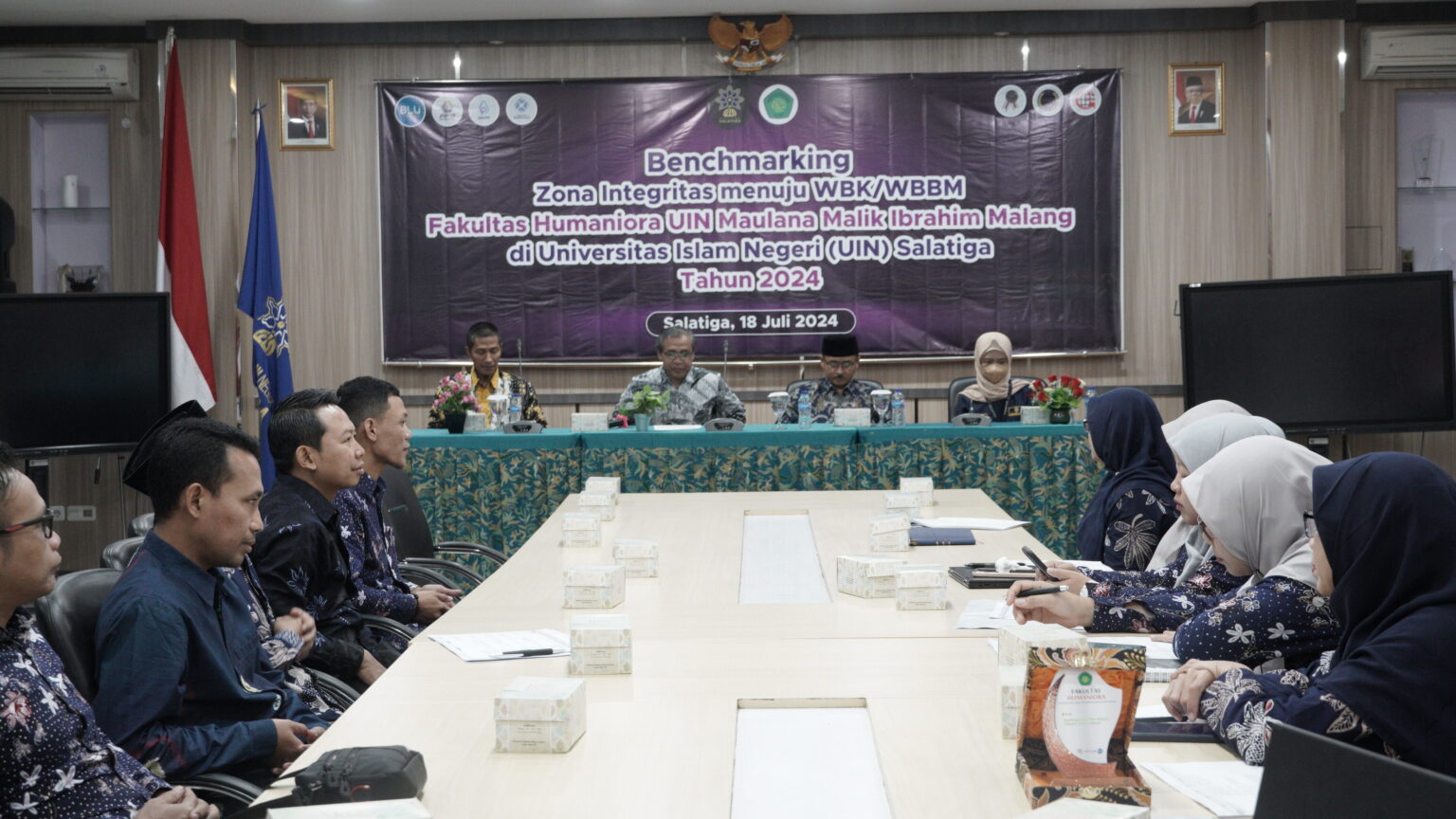 HUMANIORA – (22/7/2024) Dalam upaya mewujudkan Zona Integritas (ZI) menuju Wilayah Bebas dari Korupsi (WBK) dan Wilayah Birokrasi Bersih dan Melayani (WBBM), Fakultas Humaniora Universitas Islam Negeri (UIN) Maulana Malik Ibrahim Malang melakukan benchmarking ke UIN Salatiga pada Kamis, 18 Juli 2024. Rombongan Fakultas Humaniora dipimpin langsung oleh Dekan Fakultas Humaniora, Dr. M. Faisol.