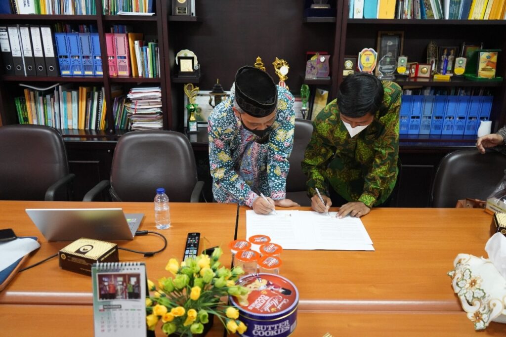 Humaniora – (02/12/2021) Fakultas Humaniora kedatangan tamu pada Kamis, 2 Desember 2021. Ia adalah Bapak Sucipto yang merupakan warga Arjosari Malang. Kedatangannya ke Fakultas Humaniora dengan membawa sebuah manuskrip raksasa bersampul kulit hewan. Manuskrip berukuran dengan 56 x 77 cm itu tak lain adalah Al-Quran 30 juz asli tulisan tangan.